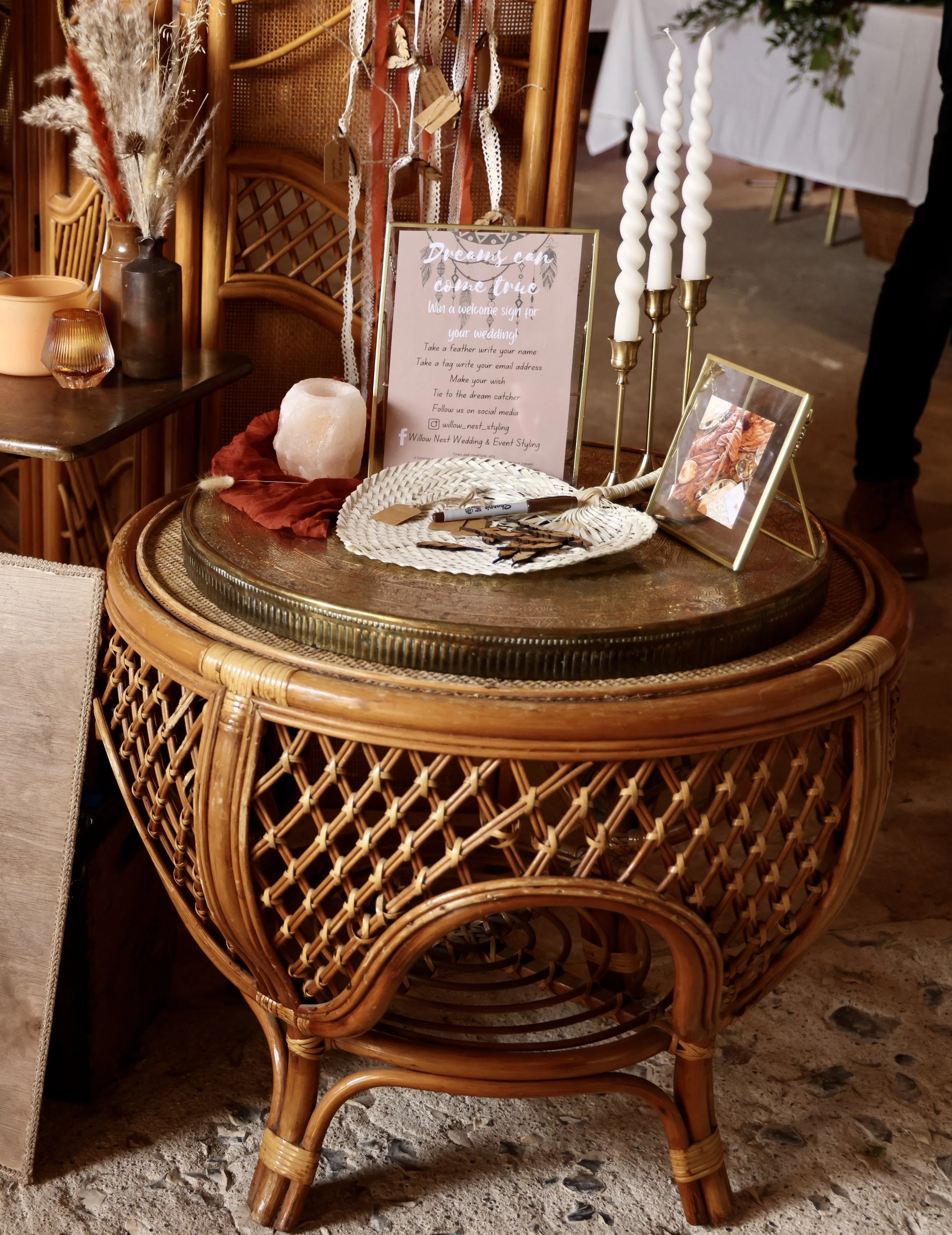 We have carefully selected a collection of props to fit the Willow Nest bohemian aesthetic. Here you will find details of the props we have available as part of our packages and stand alone hire items.